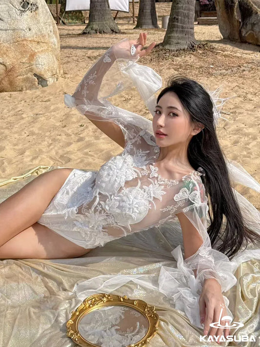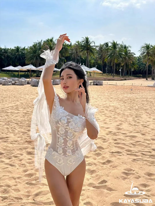 LACE SWIMWEAR FLORAL BIKINI SHEER BEACHWEAR SEXY ONE-PIECE SWIMSUIT SUMMER VACATION OUTFIT